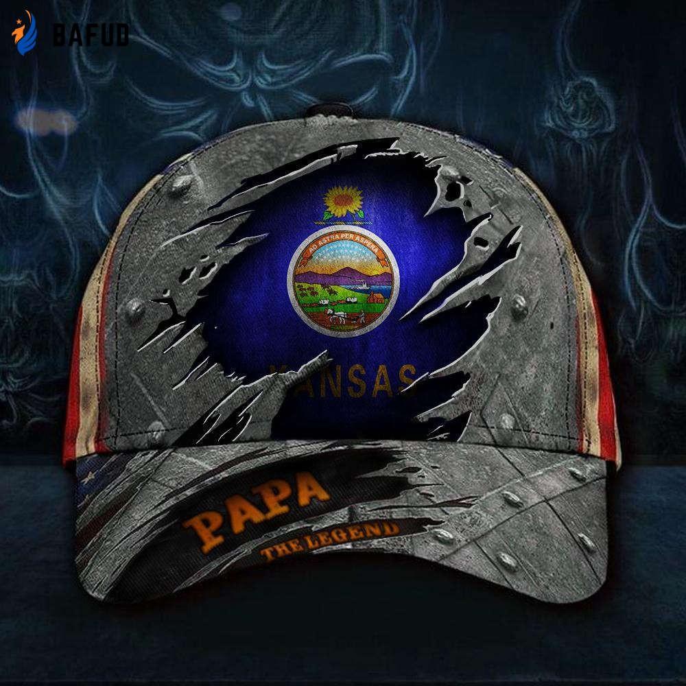 Introducing the Kansas Papa The Legend 3D Hat Vintage USA Flag Cap, the ultimate Fathers Day gift for your beloved grandpa. This classic cap is not just a piece of headgear, but a symbol of pride, patriotism, and everlasting love.