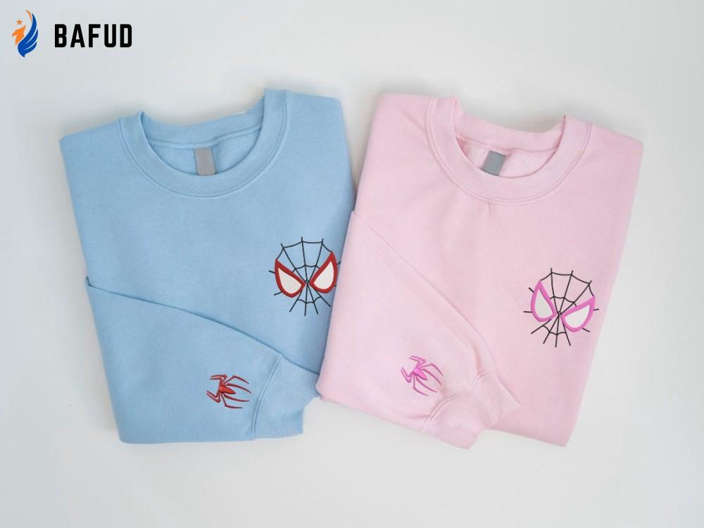 Introducing our Spider Couple Embroidered Sweater, a musthave for all Spiderman enthusiasts! Made with high-quality materials, this sweatshirt features an adorable cartoon design of Spiderman and his significant other. The intricate embroidery adds a touch of elegance to this trendy crewneck, making it perfect for casual outings or cozy nights in. Show off your love for superheroes and fashion with this Valentine Embroidered Sweatshirt. With its comfortable fit and unique design, this sweatshirt is sure to become your go-to piece. Get ready to turn heads and make a statement with this trending crewneck. Don't miss out on this limited edition Spiderman sweatshirt that combines style and comfort effortlessly. Upgrade your wardrobe and embrace your inner superhero with this Spider Couple Embroidered Sweater!