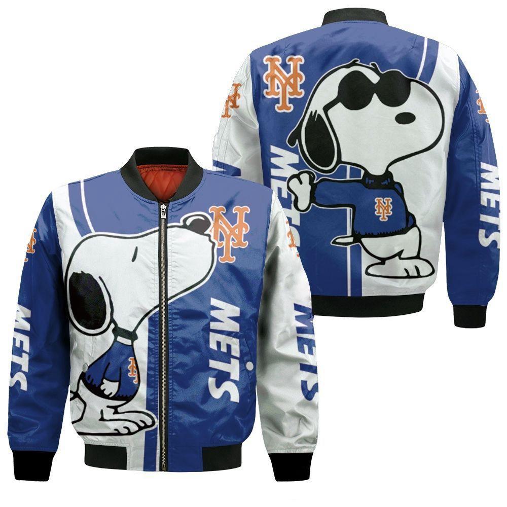 Introducing the New York Mets Snoopy Lover Bomber Jacket, the perfect gift for both men and women who are passionate about baseball and the beloved Peanuts character. This jacket is a must-have for any Mets fan, combining style, comfort, and team spirit in one iconic design. Made from high-quality materials, it offers durability and long-lasting wear. The jacket features a trendy bomber style with a snap-button closure, ribbed collar, cuffs, and waistband for a snug fit. The vibrant blue color showcases the Mets' official logo on the front, while the back proudly displays Snoopy donning the team's jersey. With its timeless design, this jacket can be worn to games, outings, or simply for everyday fashion. Show your support for the Mets and express your love for Snoopy with this unique and eye-catching bomber jacket. It's a true collectible item that allows you to stand out from the crowd and celebrate your favorite team in style. Don't miss out on this limited edition piece that will make you the envy of every Mets fan. Grab yours now and experience the ultimate blend of comfort, fashion, and team pride!