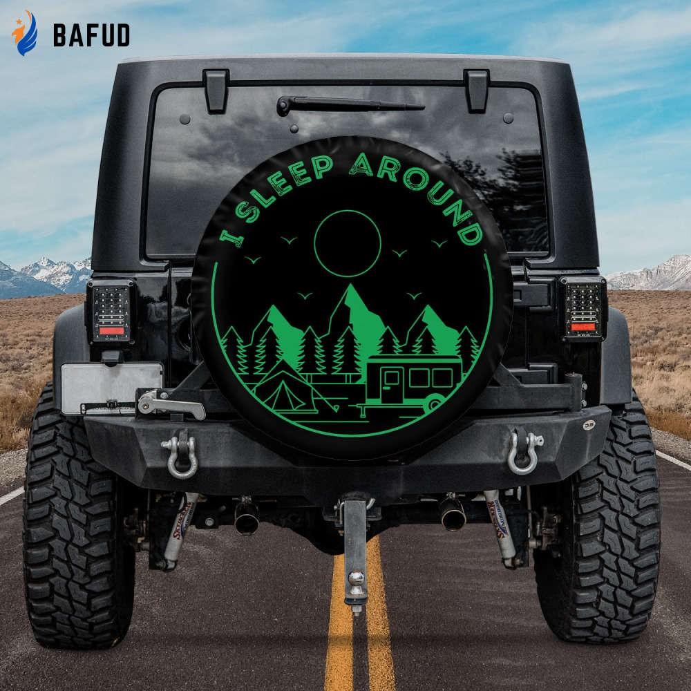 I Sleep Around Spare Tire Cover With Or Without Camera Hole, Spare Tire Cover Camper, Camping Gift,Funny Camping Sayings,Mountain Tire Cover