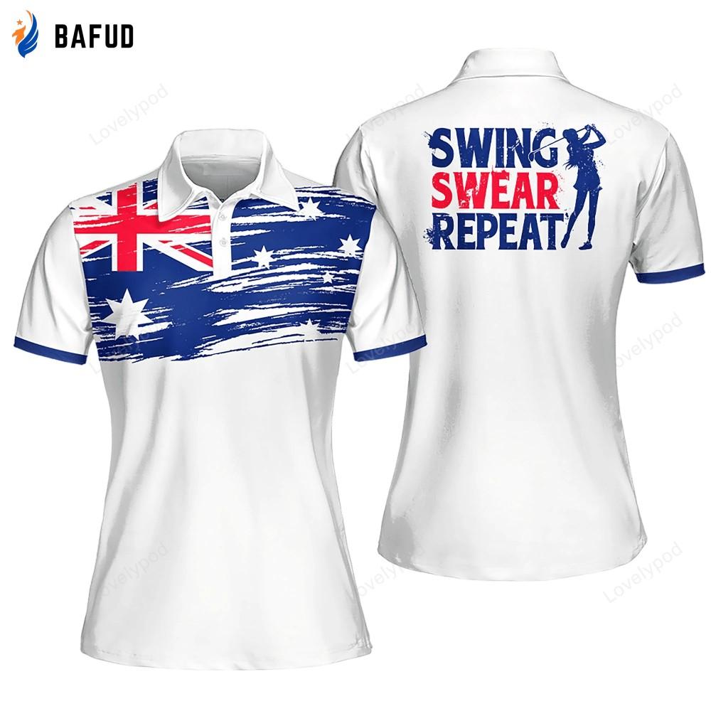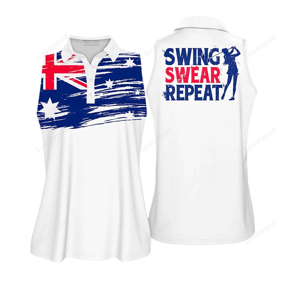 Choose the Flag Australia Swing Swear Repeat Golfer Gift Color Sleeveless Polo Shirt Short Sleeve Polo Shirt and experience the perfect combination of performance and patriotism. Order yours today and take your golf game to new heights!