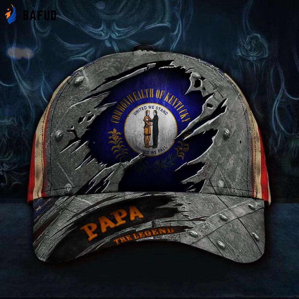 The Kentucky Papa The Legend 3D Hat Vintage USA Flag Cap is the perfect Fathers Day gift for any new dad or a classic addition to any cap collection. This cap is not just a regular hat, it's a symbol of patriotism and fatherhood, crafted with meticulous attention to detail.