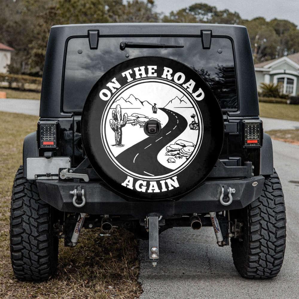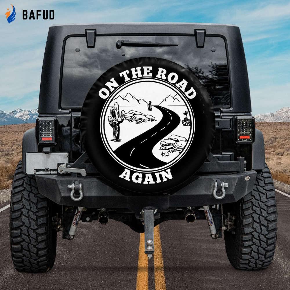 Introducing our On The Road Again Spare Tire Cover, the perfect addition to your camper or car! Whether you're a camping enthusiast or a nature lover, this tire cover is a must-have. Available with or without a camera hole, it offers convenience and style in one package.