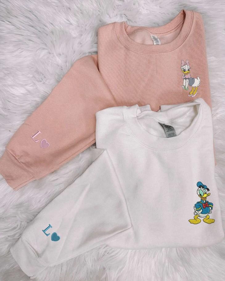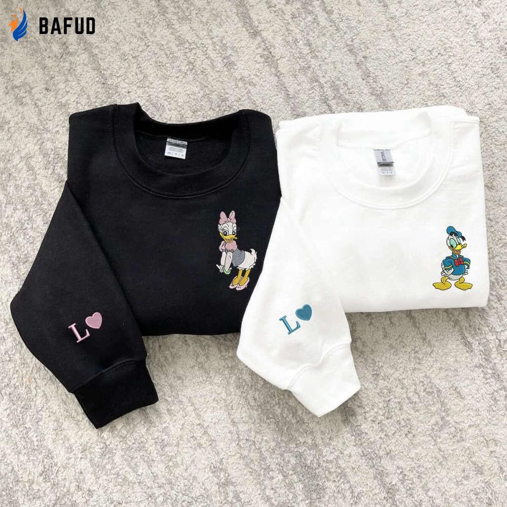 Donald and Daisy Duck Embroidered Sweatshirt: Matching Couple Shirts for Valentine s Day Cartoon Embroidery EH340-341 L H C