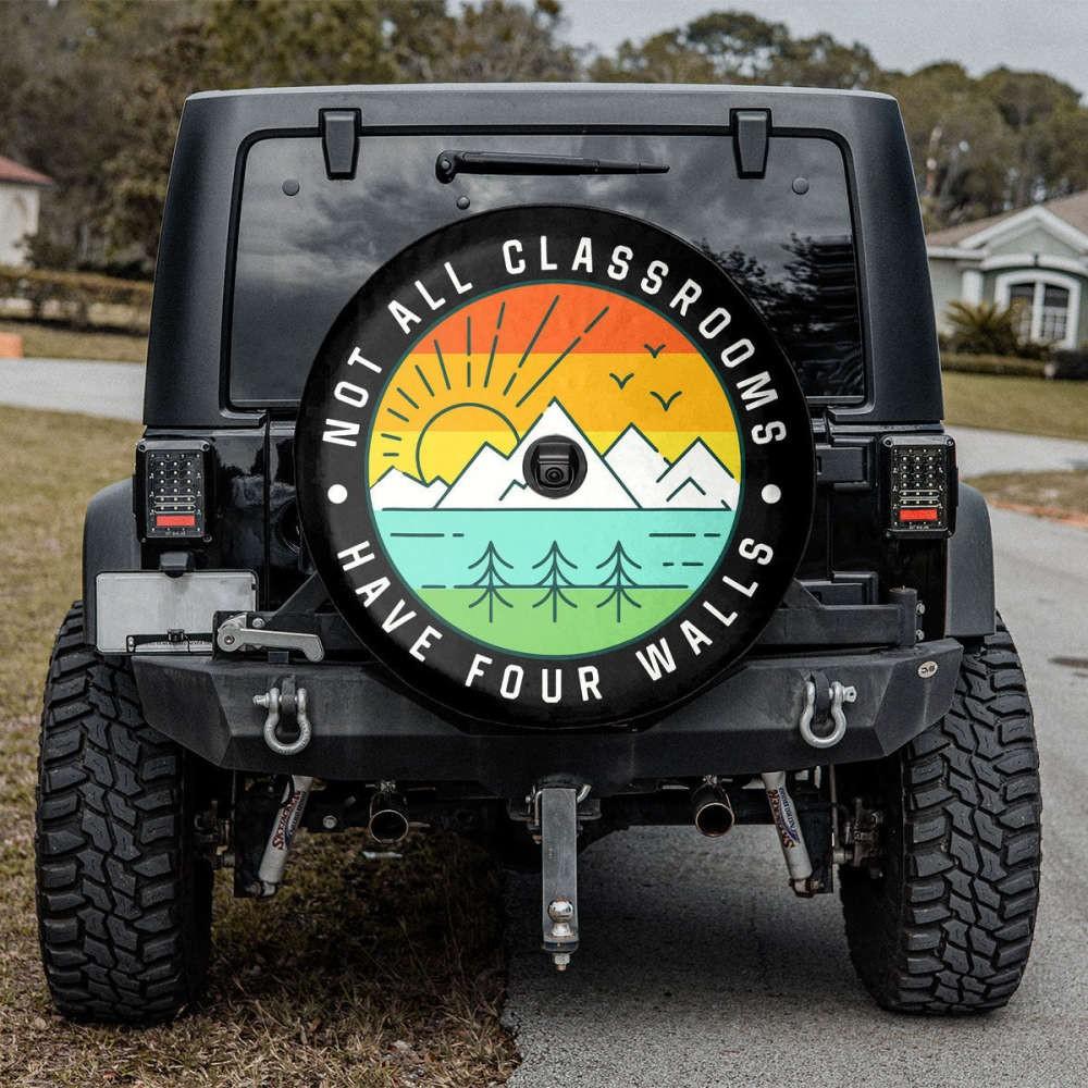 Introducing our "Not All Classrooms Have Four Walls" Spare Tire Cover, the perfect accessory for adventurers and nature enthusiasts! Whether you opt for the version with or without a camera hole, this Mountain Spare Tire Cover Camper is a musthave addition to your retro car. Crafted with utmost precision, this cover is made from high-quality materials to withstand any weather condition, ensuring durability and longevity.
