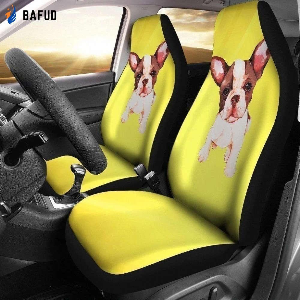 Introducing our Puppy French Bulldog Car Seat Covers, the perfect custom yellow car decoration to add a touch of charm and protection to your vehicle. Made with love and attention to detail, these seat covers are designed specifically for French Bulldog owners who want to showcase their furry friend's adorable face while keeping their car seats clean and scratchfree.