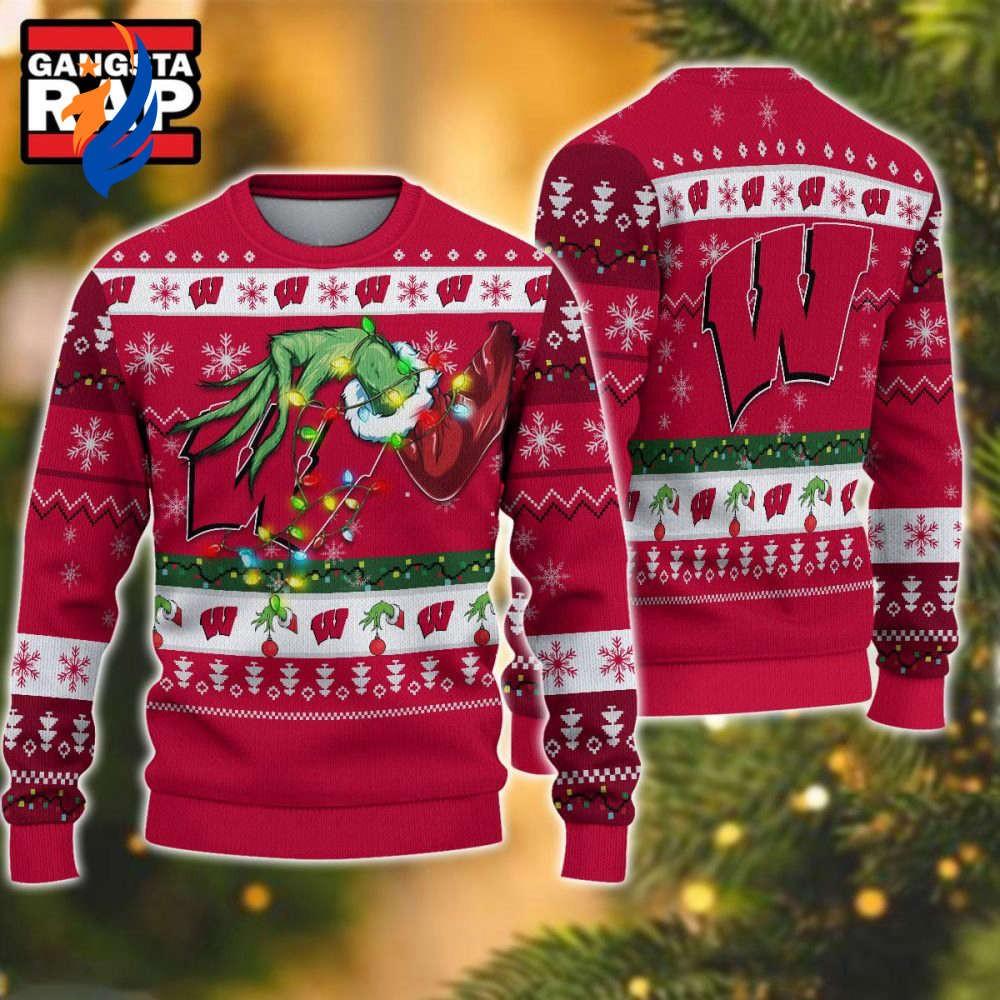 NCAA Wisconsin Badgers Grinch Hand Ugly Christmas Sweater information: