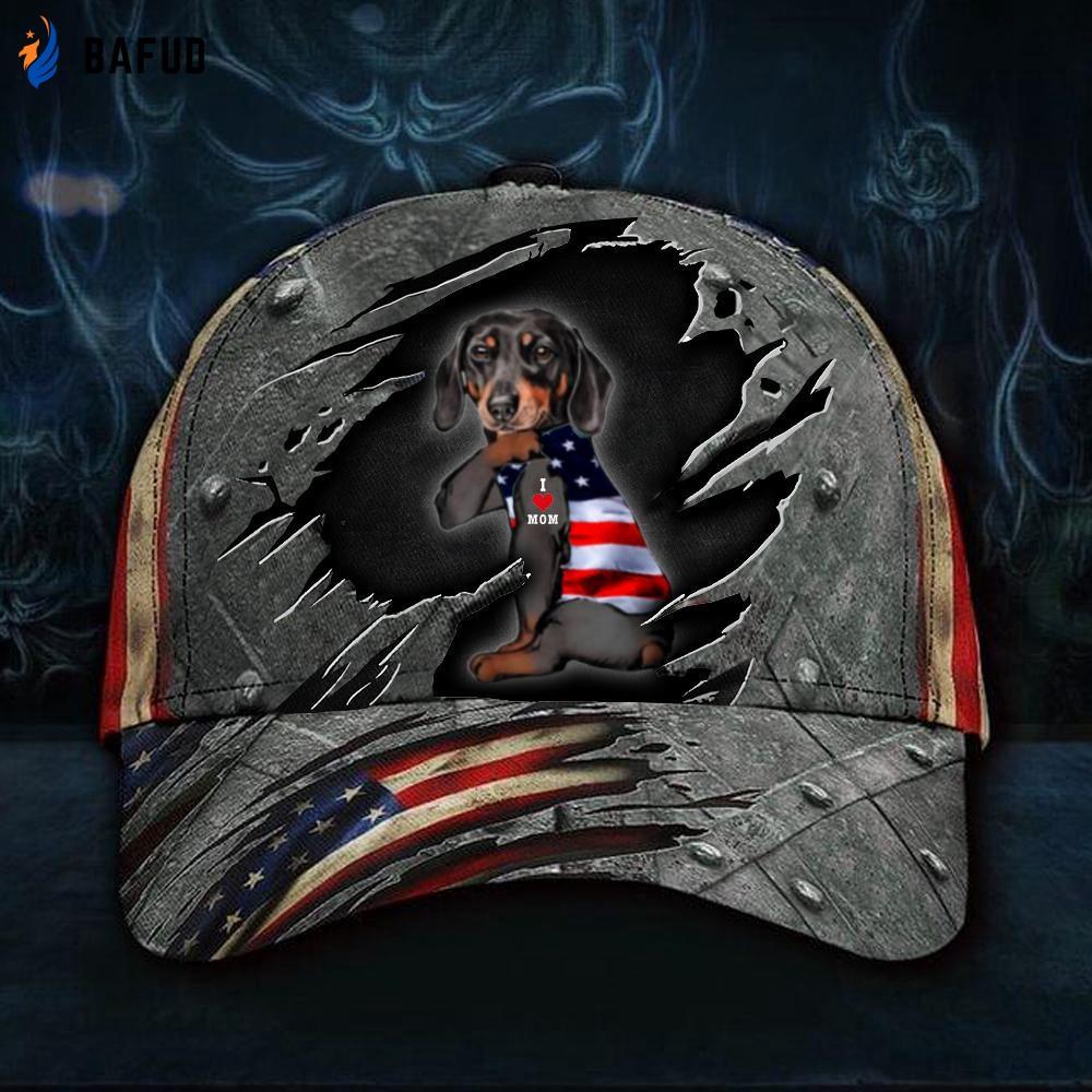 Dachshund American Flag Hat I Love Mom Winter Cap Christmas Gifts For Mom Classic Cap