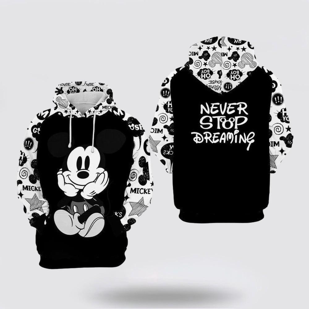 Mouse Doodle Never Stop Dreaming Over Print 3D Hoodie - Mickey 3D Shirts