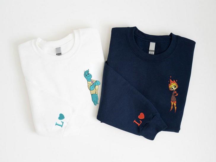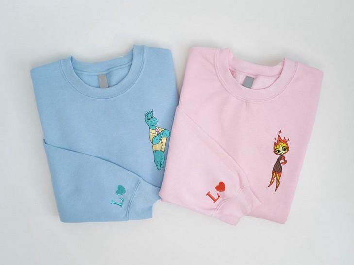 Elemental Ember and Wade Embroidered Sweatshirts - Valentine Cartoon Couple Shirt EH359-360 L H C