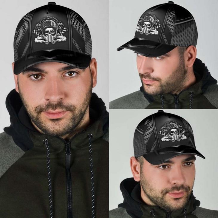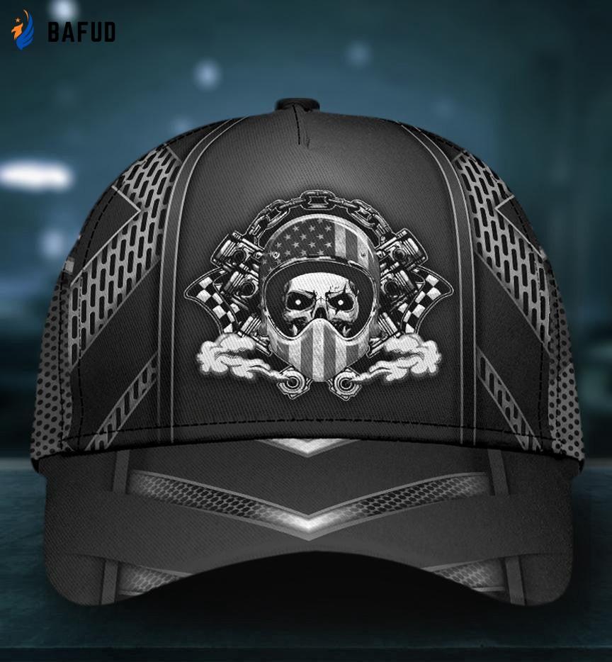 Featuring a bold and iconic American skull design, this cap exudes a sense of power and adrenaline. The intricately embroidered skull on the front adds a touch of edginess, while the classic black color ensures versatility and timeless appeal.