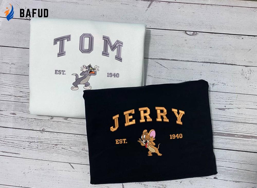 Introducing our Tom and Jerry Embroidered Sweatshirt, the perfect addition to your wardrobe! Made with high-quality materials, this sweatshirt features a trendy crewneck design and vintage-inspired graphics. The intricate embroidery of Tom and Jerry adds a playful touch to your outfit. Whether you're a fan of the classic cartoon or simply want to embrace a nostalgic vibe, this sweatshirt is a must-have. Not only does it offer style and comfort, but it also serves as a conversation starter and a reflection of your unique personality. Get ready to spread holiday cheer with our Christmas Shirt EH295-296, featuring festive designs and cozy fabric. Don't miss out on these limited edition pieces, as they are guaranteed to become your go-to favorites. Upgrade your fashion game and stand out from the crowd with these captivating embroidered sweatshirts. Order now and experience the value of timeless style!