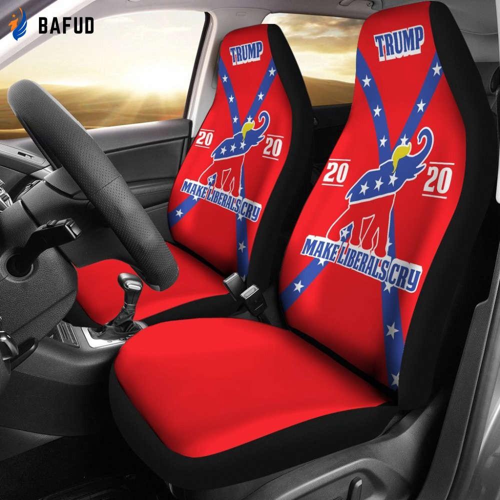 Introducing our TRUMP Make Liberals Cry 2020 Car Seat Covers, the perfect way to show your support for President Donald Trump while adding a touch of patriotism to your vehicle!