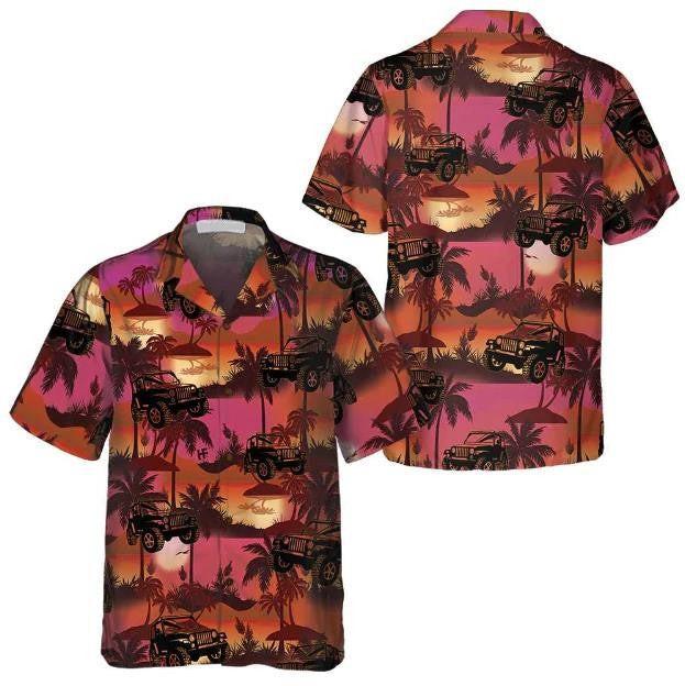 Jeep Tropical Palm Trees Beach At Sunset Pattern Hawaiian Shirt, Hawaiian Shirt Gift, Christmas Gift