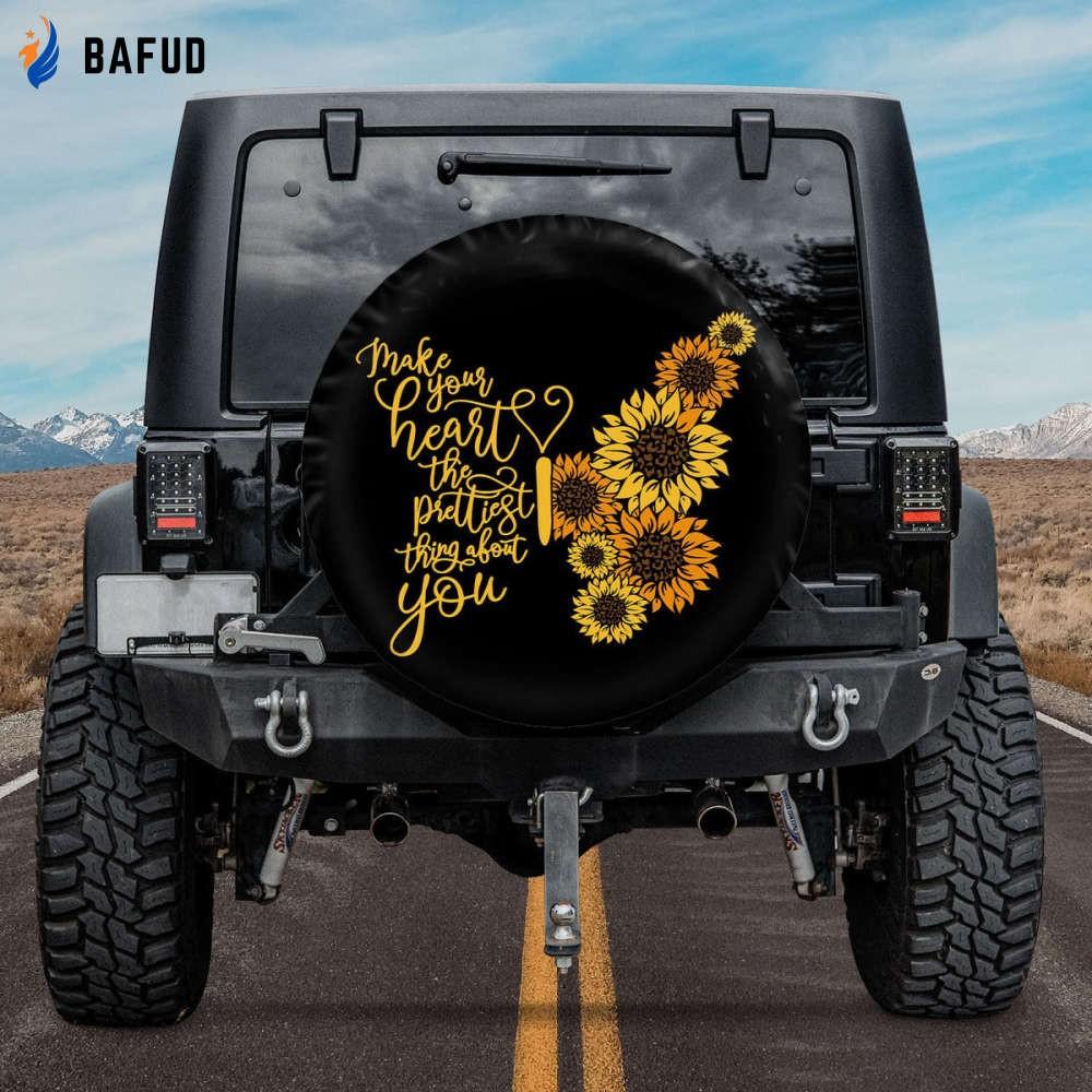 Introducing our Sunflower Butterfly Spare Tire Cover, designed to make your heart the prettiest thing about you! Whether you opt for the camera hole or not, this vibrant and eye-catching accessory is perfect for expressing your free-spirited nature. Made with high-quality materials, it ensures durability and longevity.