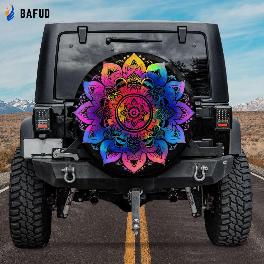 Our Colorful Floral Relaxation Spare Tire Cover is a true masterpiece that combines nature's beauty with the art of meditation. Its eye-catching floral pattern brings a burst of color to your vehicle, creating a soothing atmosphere both on and off the road. The integrated camera hole allows you to preserve those breathtaking memories while exploring. Not only do these tire covers add a touch of elegance to your vehicle, but they also offer practical benefits. Crafted from highquality materials, they provide exceptional protection against dirt, dust, sun, and rain, ensuring that your spare tire remains in pristine condition. Easy to install and remove, these covers fit most standard spare tires, making them versatile and suitable for various vehicles.
