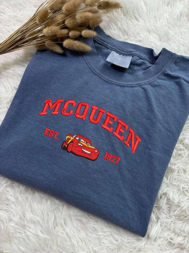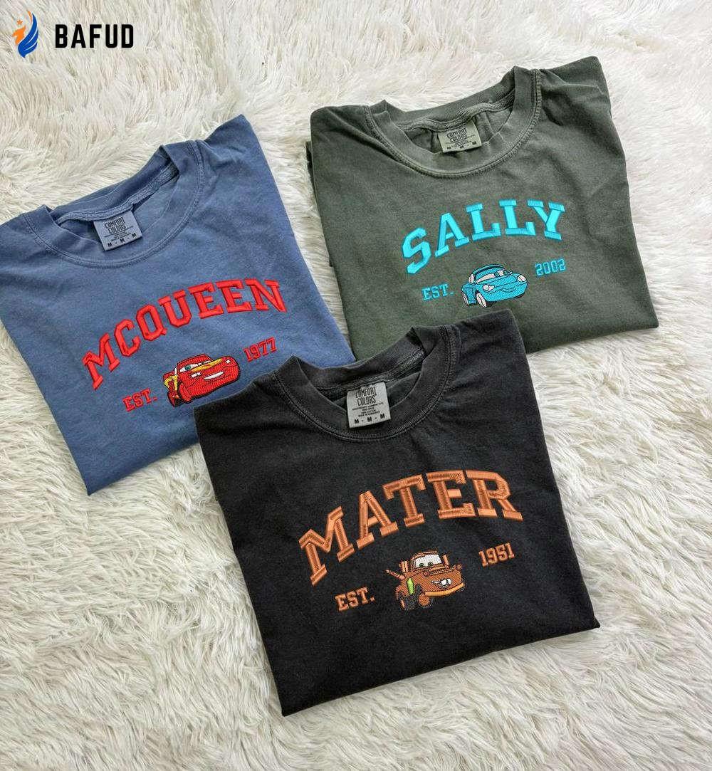Tee, a must-have for fans of the beloved Cars movie! This Cartoon Embroidered Shirt features iconic characters such as McQueen, Sally, and Mater, meticulously embroidered for a vibrant and long-lasting design. Made from high-quality Comfort Colors fabric, this tee guarantees unmatched comfort and durability. Whether you're a die-hard Cars enthusiast or looking for a perfect gift, our shirt is bound to bring smiles and memories. Join Lightning McQueen and his friends on thrilling adventures with this extraordinary shirt. Order now and experience the magic of Cars!