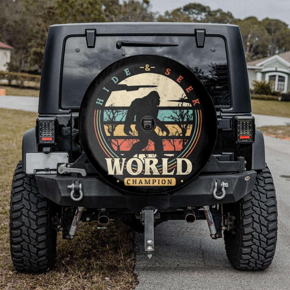Featuring the captivating "Hide and Seek World Champion" design, this cover is available in two options - with or without a camera hole. The camera hole option allows you to securely attach a camera to your spare tire for capturing thrilling moments on your off-road expeditions.