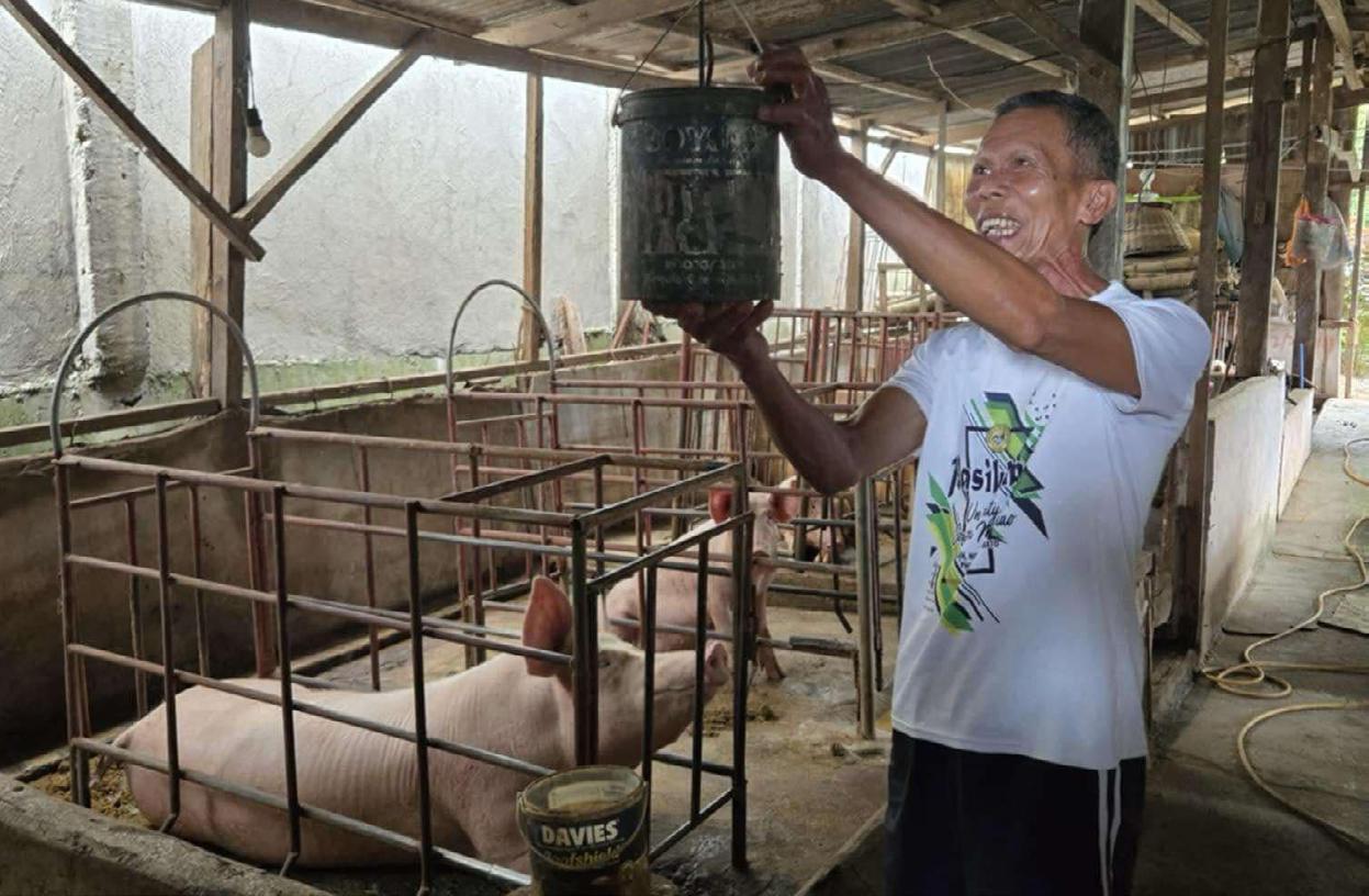 BUHAY SAKAHAN. Matiyagang nagsikap ang isang magsasaka upang mapanatiling malamig at ligtas ang kaniyang mga hayop.