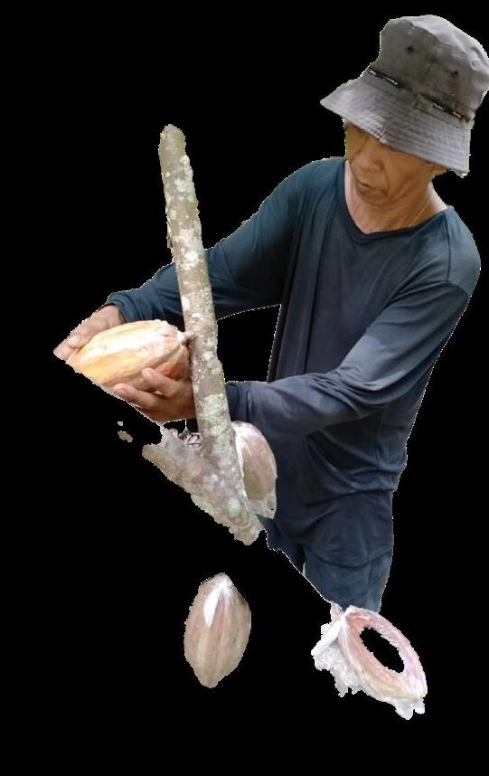 KUHA NI: Vivencio Necesito CACAOISGOLD. Maingat na kinukuha ng magsasaka ang isang cacao pod na ibinebenta sa mga chocolate manufacturer.