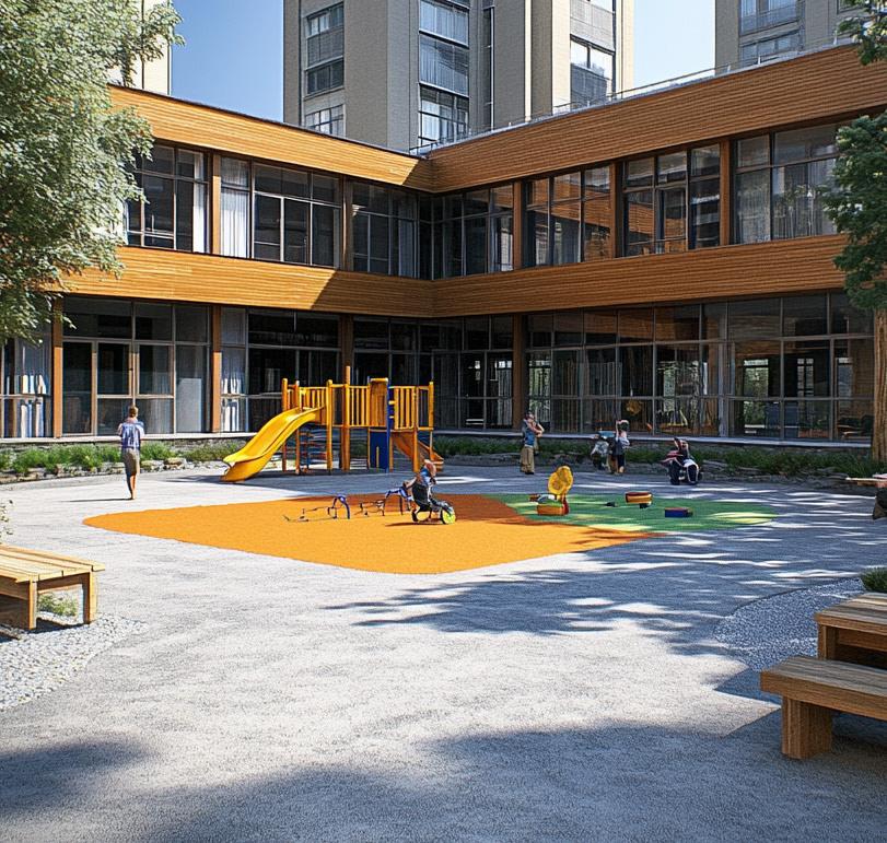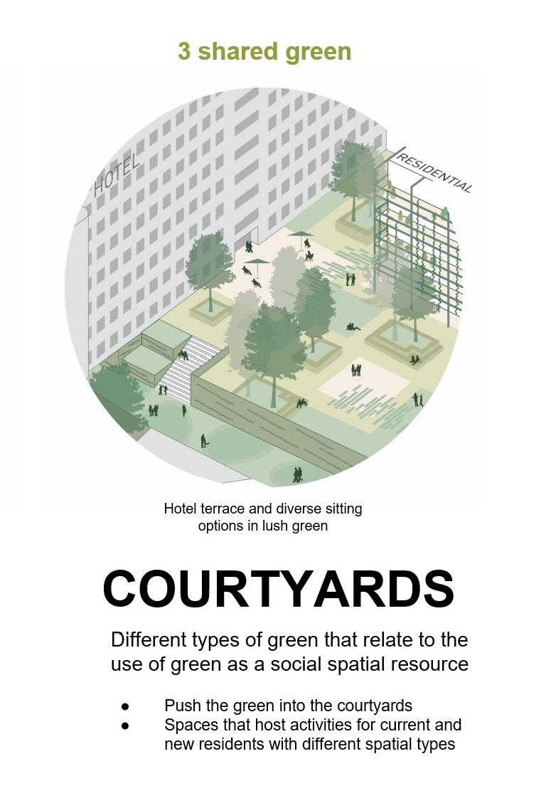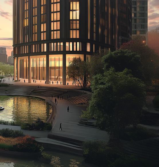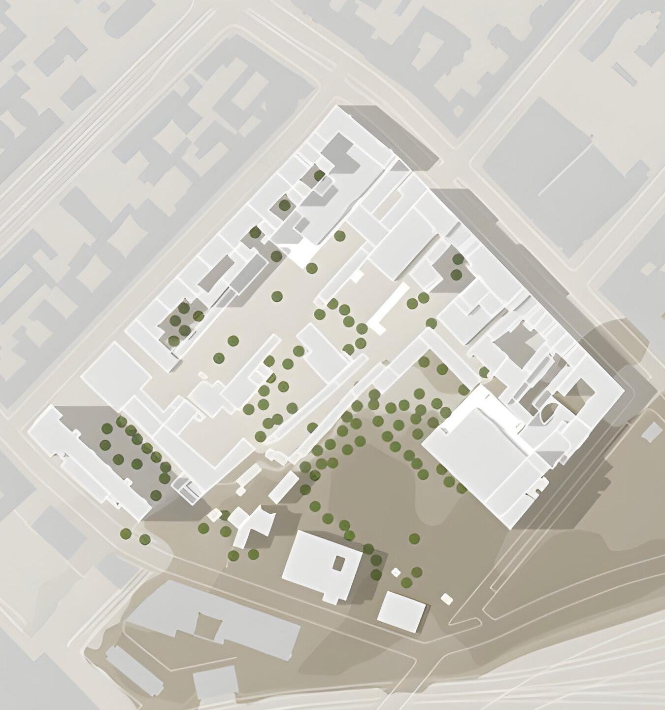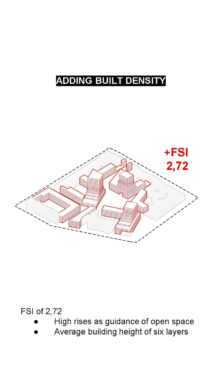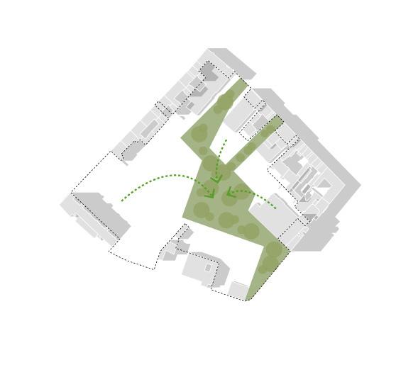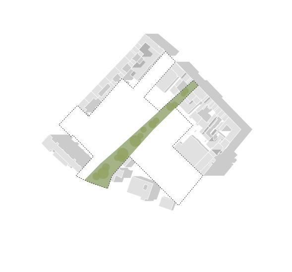 Some old buildings will be demolished to open green corri-dors, and existing structures will be renewed for energy effi ciency and modern functionality. New buildings will be strategically placed to integ-rate with the urban spaces network, featuring pedestrianand bicycle-friendly pathways, improving acces-sibility to neighboring districts, and providing a direct connection to the new metro station. Some existing functions will be relocated to more suitable areas for better synergy, and medical and wellness facilities will expand in quiet, green spaces. Currently, the Chemical Institute is enclosed by fences, creating a clo-sed-off appearance.