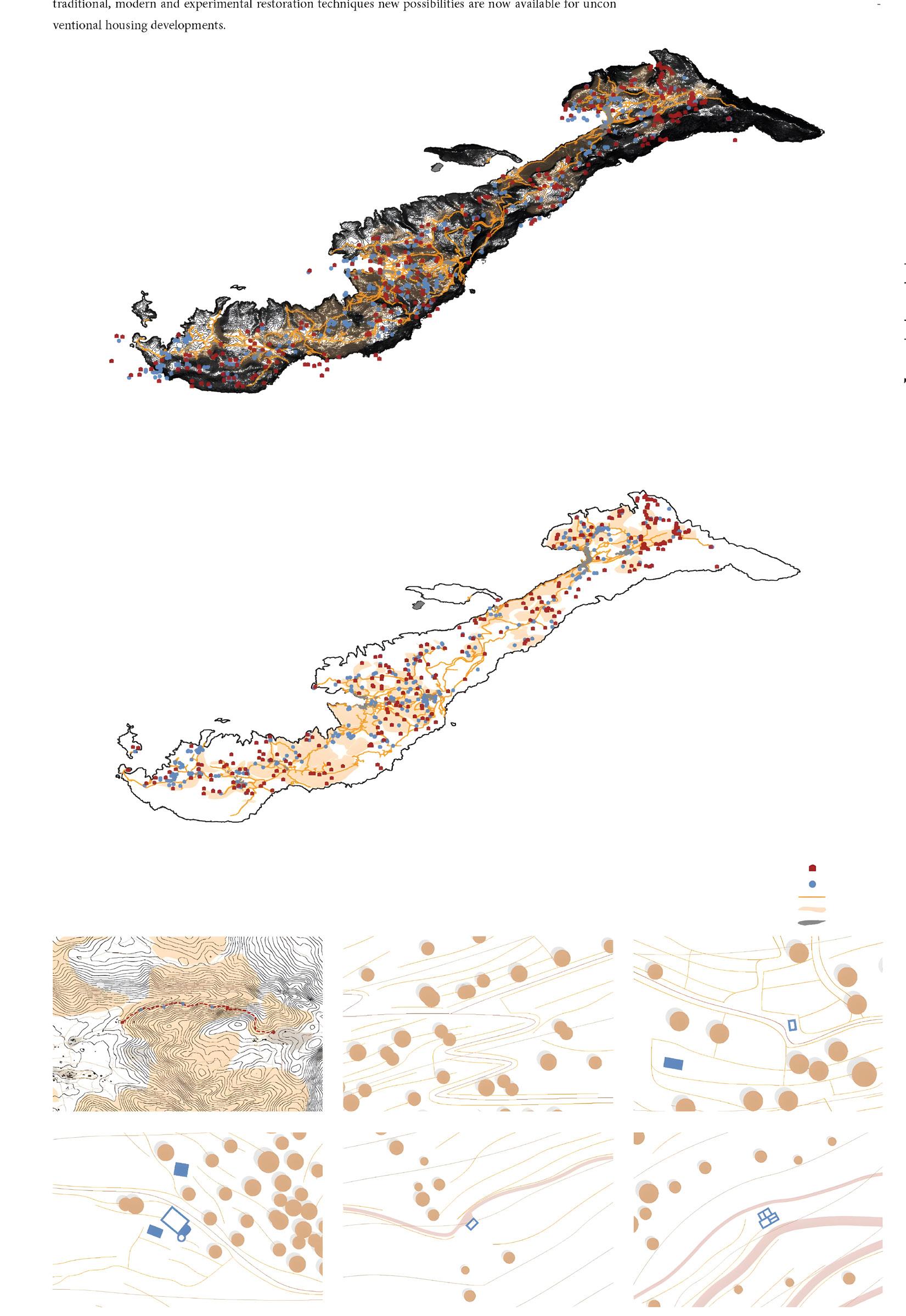 The chosen location for restoration, conservation, and revitalization will be determined based on the overlapping of the following maps: historical water infrastructure (water reservoirs), museums, and abandoned structures. e selected location should be suitable for accommodating tourists, beneting from its proximity to tourist attractions, water resources, and terraces. The mentioned narrative as a sampele for competition is presented graphically, including maps and descriptions that illustrate the signicance of restoring and revitalizing abandoned structures in enhancing tourism and sustainable development on the island.