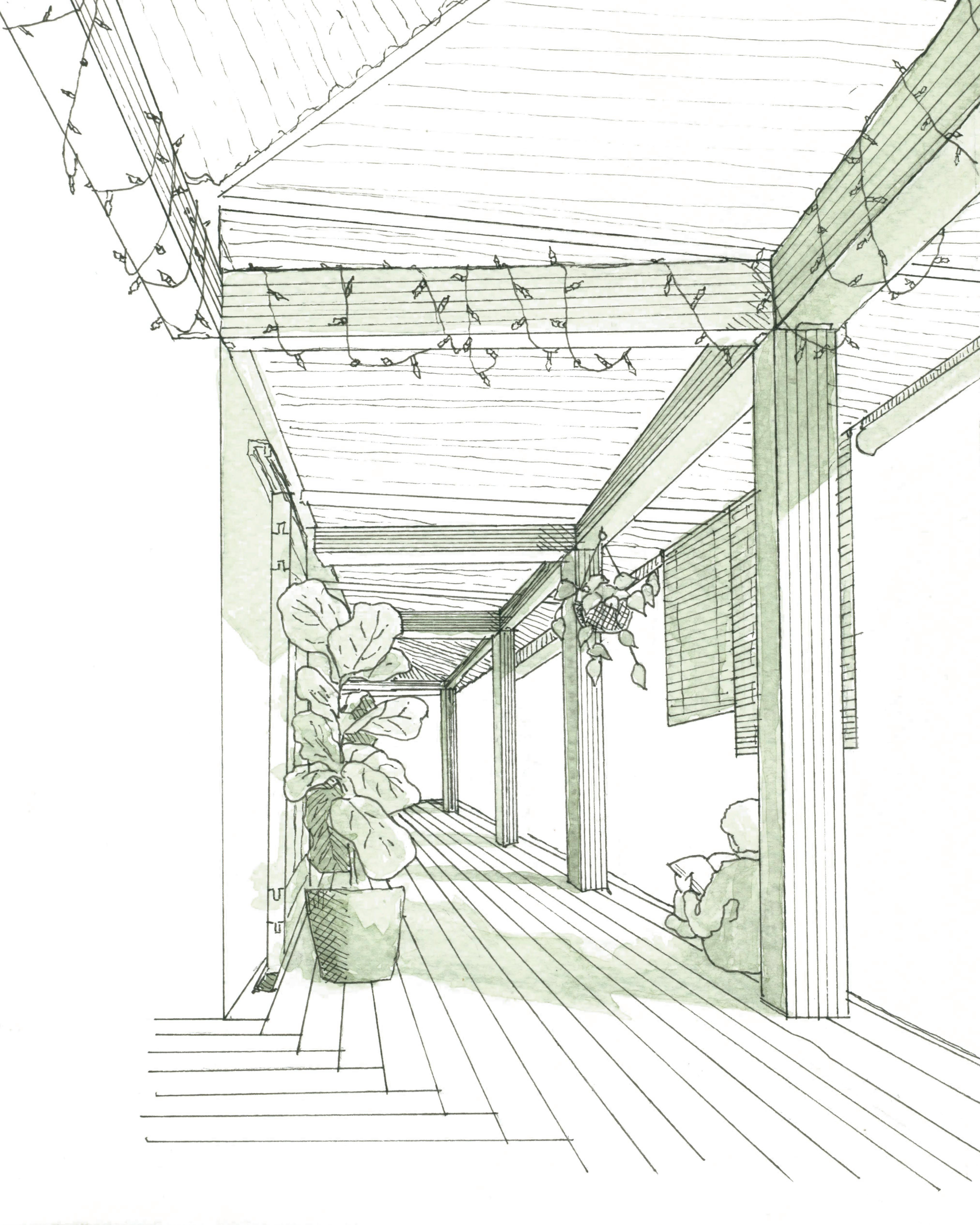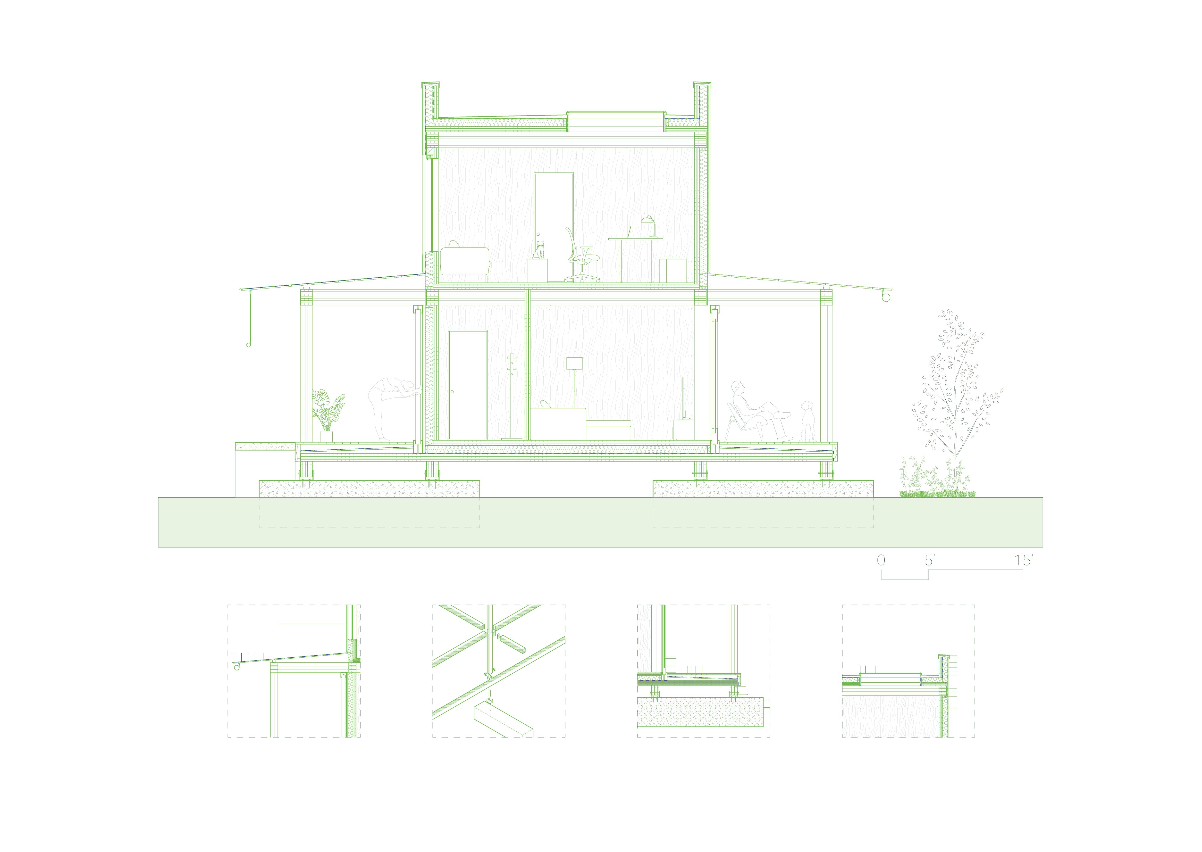 This project is designed to be fully constructed with mass timber. The idea for the house was to be specifically catered to the Houston Climate. Typically Climate houses are made to insulate in winter and open up in summer. In Houston, the summer temperatures and humidity are the elements that the house must be insulated from. The winters, on the other hand, are nice and ideal weather for spending time outside comfortably. With this in mind, this project is designed to stay cool and shaded in the summer, and expand into the outdoors for the winter.