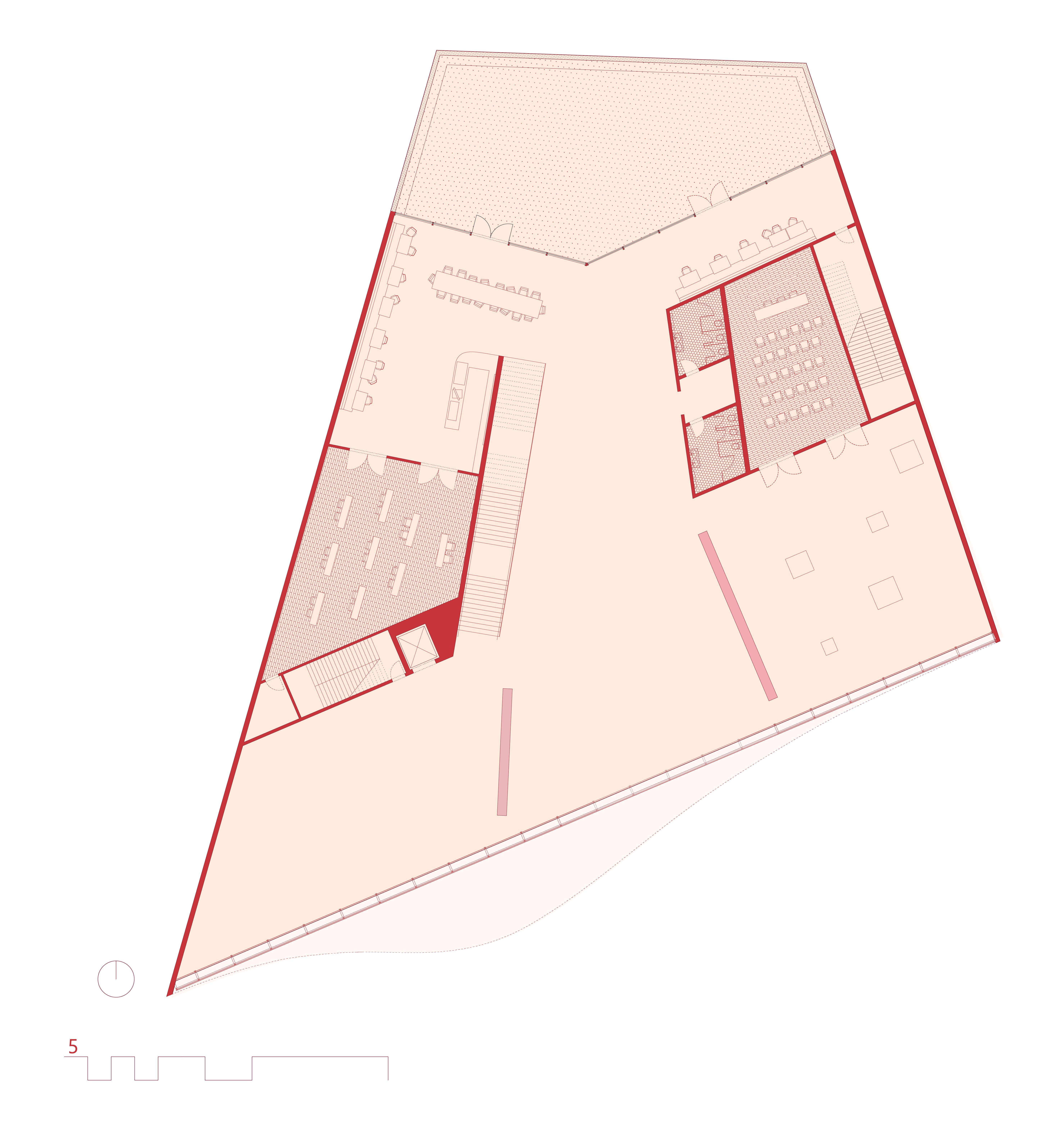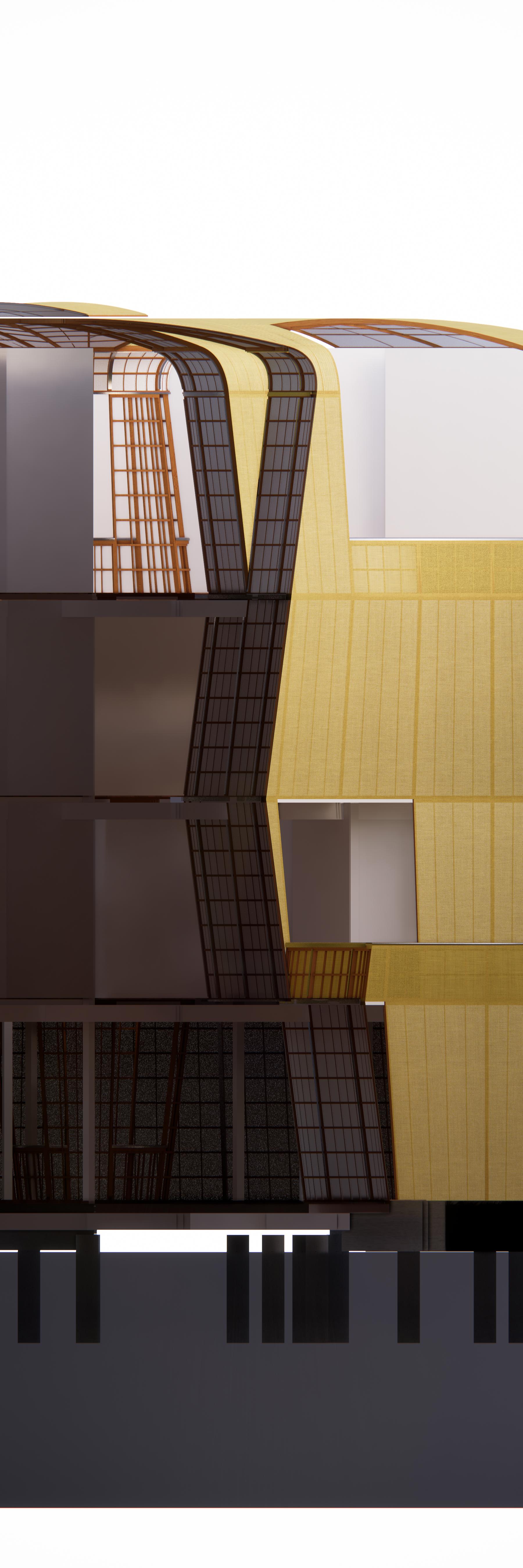 Taking inspiration from Herzog De Meuron’s Vitra Haus, this project attempt to use similar language of rotated extrusions and varying floor to ceiling heights. The ground level is dedicated to a mix of retail and manufacturing, originally intended for a small business that manufactures custom wax coats. The second and third levels have spaces for retail, resturants, offices, and private practices. The last two floors are a collection of unique apartments. The glass caps at the end of each extrusion serve as a focal point for the space and to allow for reorientation amidst changing axes.
