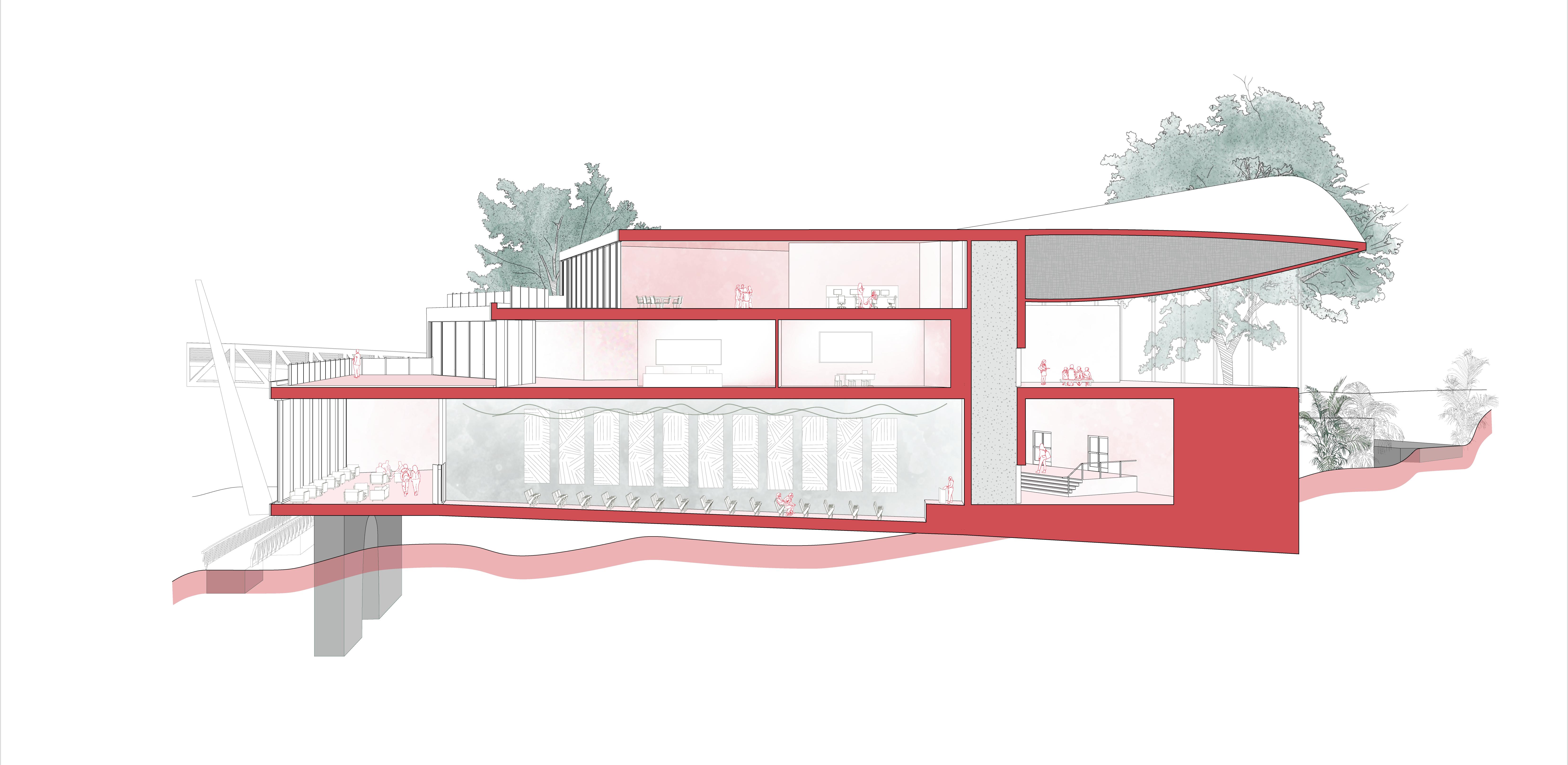 Immigration Museum Houston is a celebration of the history and influence of immigrants on the city of Houston. As the most diverse city in the United States, it is easy to see how much of an impact immigration has had on the city. Located on Buffalo Bayou, this project integrates itself into this unique landspcape and provides gallery space, conference rooms, archives, a cafe, and two 150 seat aditoriums for lectures and screening films.
