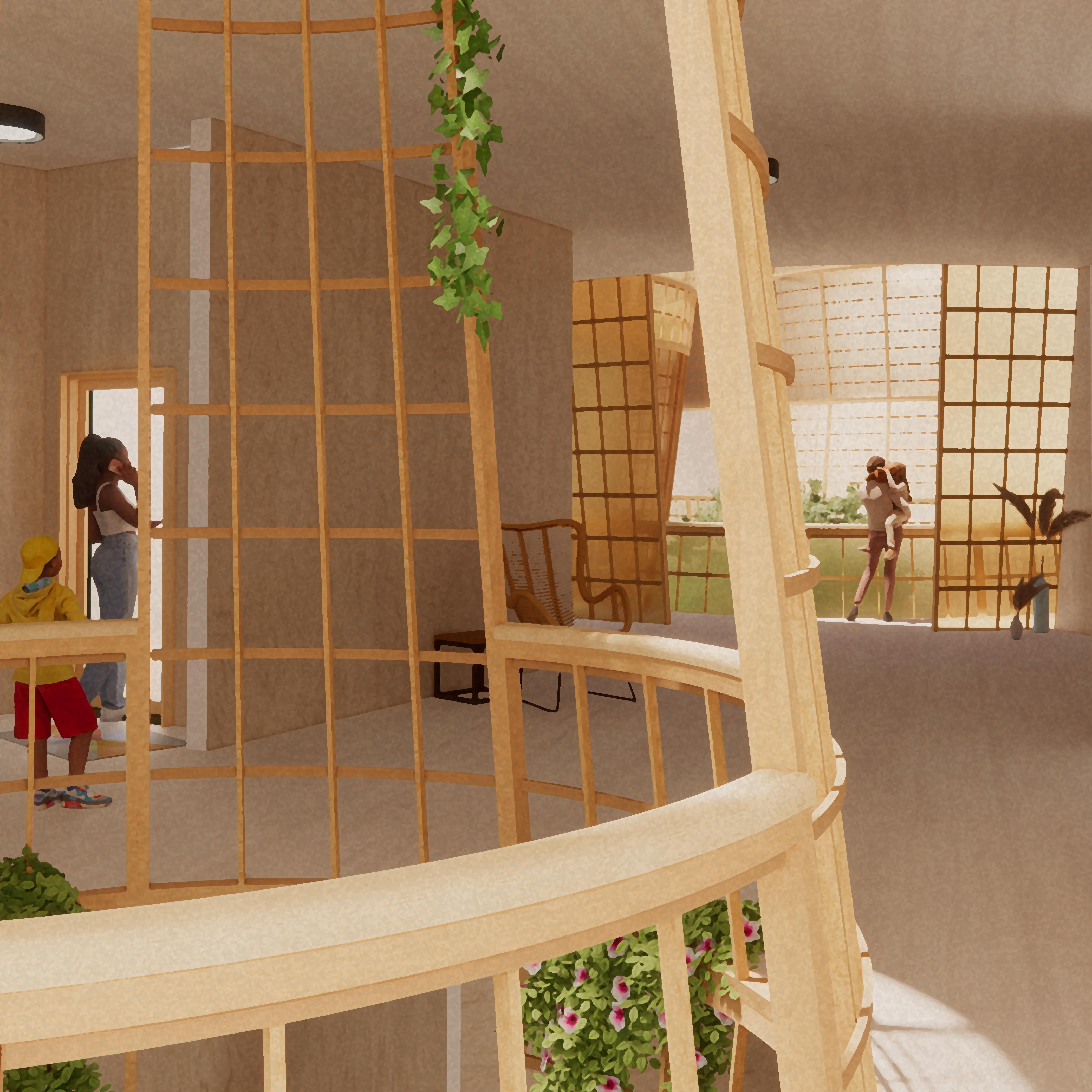 Located on the current site of the Emergency Aid Coalition, within the Museum District of Houston, TX, the shelter for single mothers is designed to provide temporary housing, mental and physical healthcare, dining, and childcare services. The Emergency Aid Coalition currently does an outstanding job of serving the homeless of the area as well as families in need, though they have outgrown their facility and are in need of larger storage and meal prep areas. The shelter would join their new facility on the currently unoccupied space on the rest of the city block, both programs contained in a singular envelope while maintaining a strict level of security needed to protect the women of children that require the shelter’s services. This envelope was developed within the studio following a structural study of the skin-on-frame kayak, a 4,000 year-old technology originally constructed with driftwood, seal skin, and sinew lashing.