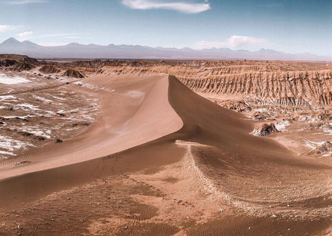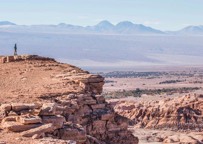 Witness the Rainbow Valley’s namesake mineralrich formations, where vivid bands of red, green, yellow and white create a natural palette shaped by iron, clay and other deposits. Continue to Hierbas Buenas, home to intricate pre-Columbian petroglyphs depicting animals and ancient desert trade routes.