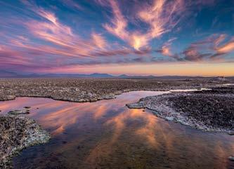 Apesar de ser um dos lugares mais secos do mundo, o deserto surpreende pela vida que abriga: lagos repletos de flamingos, poços minerais e gêiseres marcam o cenário, enquanto antigas pinturas rupestres e cores em constante transformação revelam a beleza extraordinária e o mistério do alto deserto chileno.