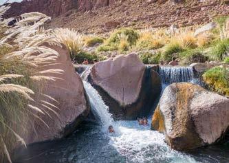 Relaxe nas Termas de Puritama, um conjunto de oito piscinas naturais situadas em um cânion a 30 quilômetros de San Pedro. Banhe-se em águas termais entre 28 °C e 31 °C, ricas em minerais revitalizantes como cálcio, magnésio e boro, cercadas por vegetação nativa e vistas serenas do deserto.