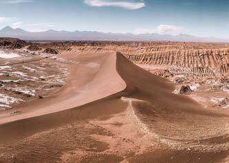 Parta para uma jornada emocionante pelas impressionantes paisagens desérticas do Atacama. Siga uma antiga estrada em direção a Calama, encontrando terrenos esculpidos e de aparência sobrenatural, além de vistas deslumbrantes de vulcões imponentes. Suba uma pequena duna ao longo da borda do Vale da Morte, onde um panorama de 360 graus revela oásis, salares e picos acidentados.