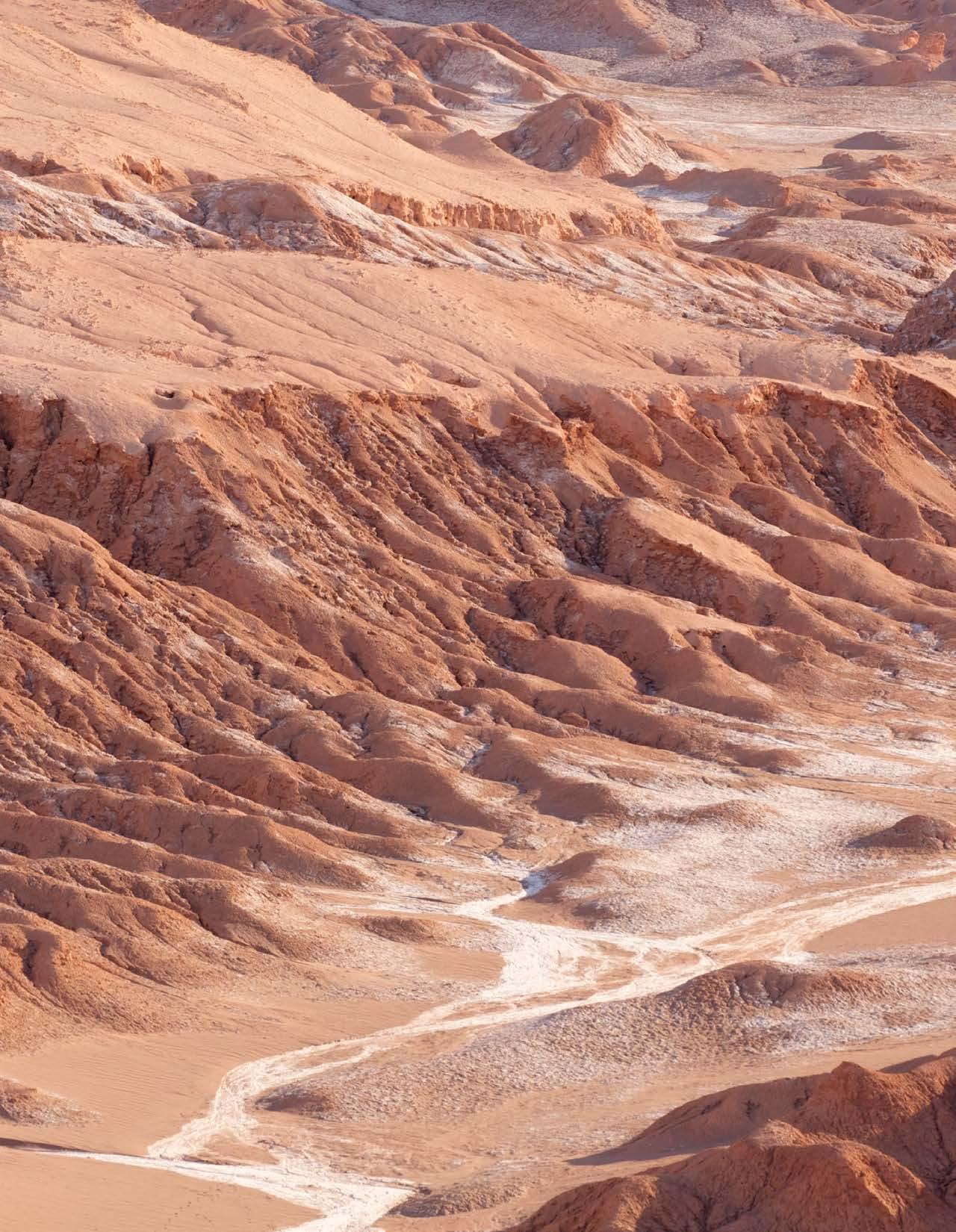 Viaje para o sudoeste de San Pedro de Atacama até a Cordilheira de Sal e explore a extensão surreal do Vale da Lua. Caminhe entre formações rochosas de outro mundo, moldadas pelo vento, pela água e pelas condições extremas do deserto, e experimente a vastidão da paisagem dramática do Atacama.