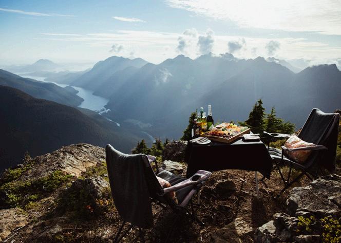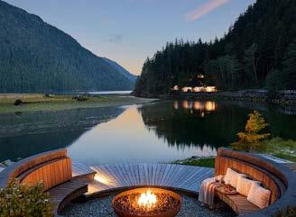 Located on the foreshore of Clayoquot Sound and welcoming magnificent views of its vast oceanic wilderness, The Cookhouse is the hub of dining, drinking and lounging. The main restaurant features an open kitchen promising entertaining coal-face style theatre and a dailychanging menu of locally sourced sustainable produce. Generous lounging flows to the decks outside, a perfect spot to relax and drink in the views. In the evenings a fire draws in guests for s’mores and shared stories. Adjacent canvas tents welcome special occasion or private dining, live music events and a friendly game of billiards.