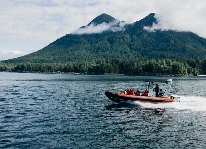 Guests can choose to arrive via sea on one of Clayoquot's various boats for the 45-minute passage from the marina located at 634 Campbell St, Tofino BC V0R 2Z0.