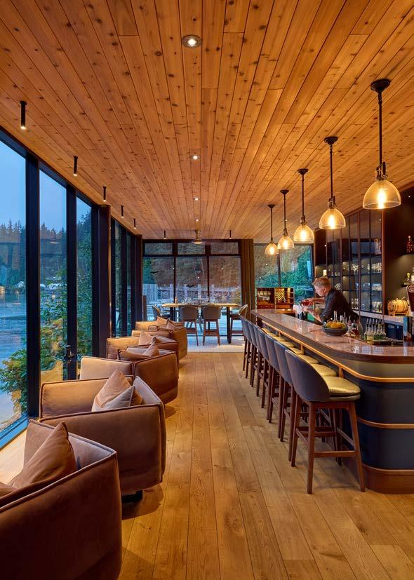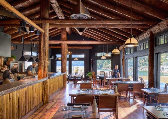 Named for Clayoquot’s vintage tugboat, the Ivanhoe Bar sits where the Bedwell River meets the Pacific. Floor-to-ceiling glass frames views of the sound as bears, eagles, herons, otters and seals go about their business. Guests lounge in leather armchairs warmed by an open fire while handcrafted cocktails and fine wines create a warm, wildlife-watching retreat.