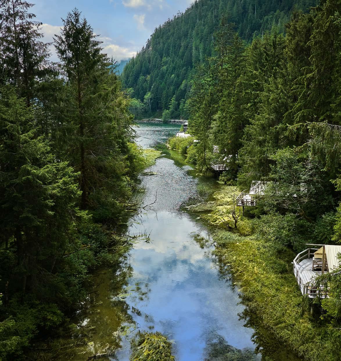 • Greet the day with a sunrise yoga flow or an exhilarating glacial plunge in the Bedwell River