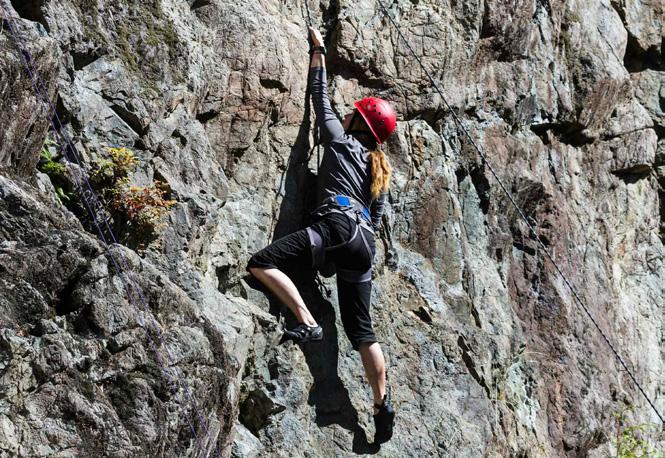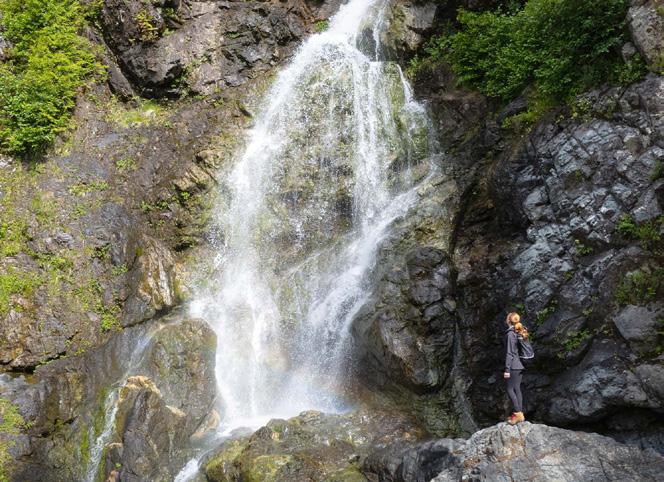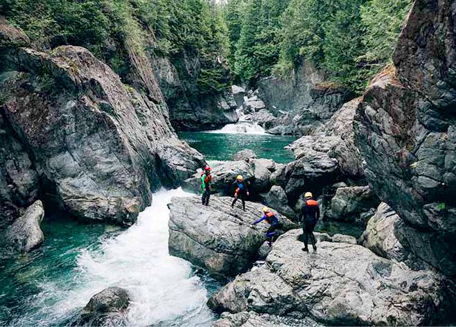 The lodge’s signature canyoning experience begins with an e-bike ride to reach the glacierfed waterfall channel, followed by a paddle upstream, a scramble over boulders, a refreshing swim and a thrilling jump from the suspension bridge. Wow!