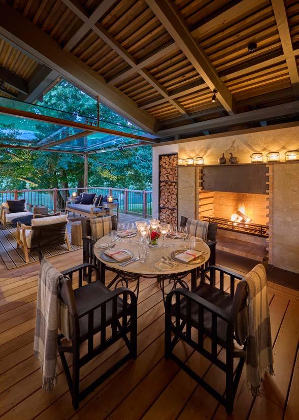 A versatile space for outdoor meetings or dining, the Orchard is set amongst heirloom fruit trees. Warmed by braziers, the setting accommodates up to 12 guests for intimate sit-down dining on two tables of six or up to 40 guests for cocktail-style drinks and canapés.
