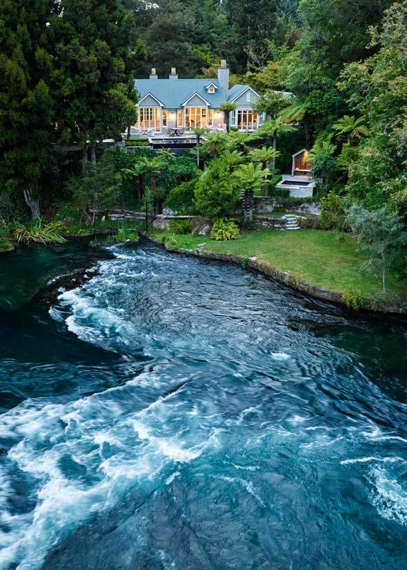 Set amongst rolling green lawns that frame the banks of Taupō’s Waikato River and just upstream from the dramatic Huka Falls, Huka Lodge invites guests to step into another world.