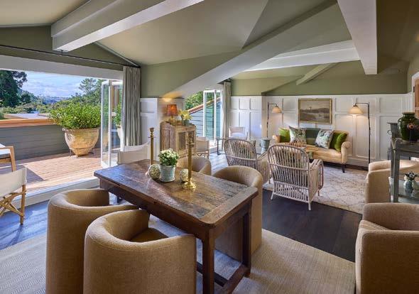 Styled with country antiques and artworks personally sourced by Virginia Fisher, The Loft is located upstairs and is ideal for a formal meeting or private dinner. Dining is accommodated on two tables of eight.