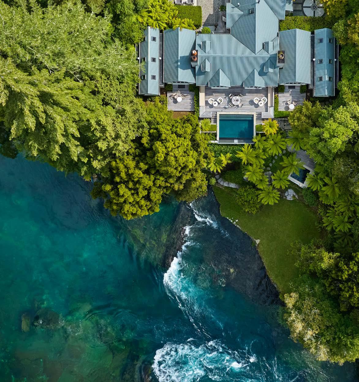 A welcoming, at-home feel extends from the generously inclusive tariff at Huka Lodge, making group planning effortless. Each stay includes full à la carte breakfast, pre-dinner drinks and canapés, fourcourse dinner matched with premium wines, in-suite bar, return Taupō airport transfers and the use of lodge facilities including swimming and spa pools, tennis, pétanque and croquet courts. Special packages can be tailored to suit group needs.