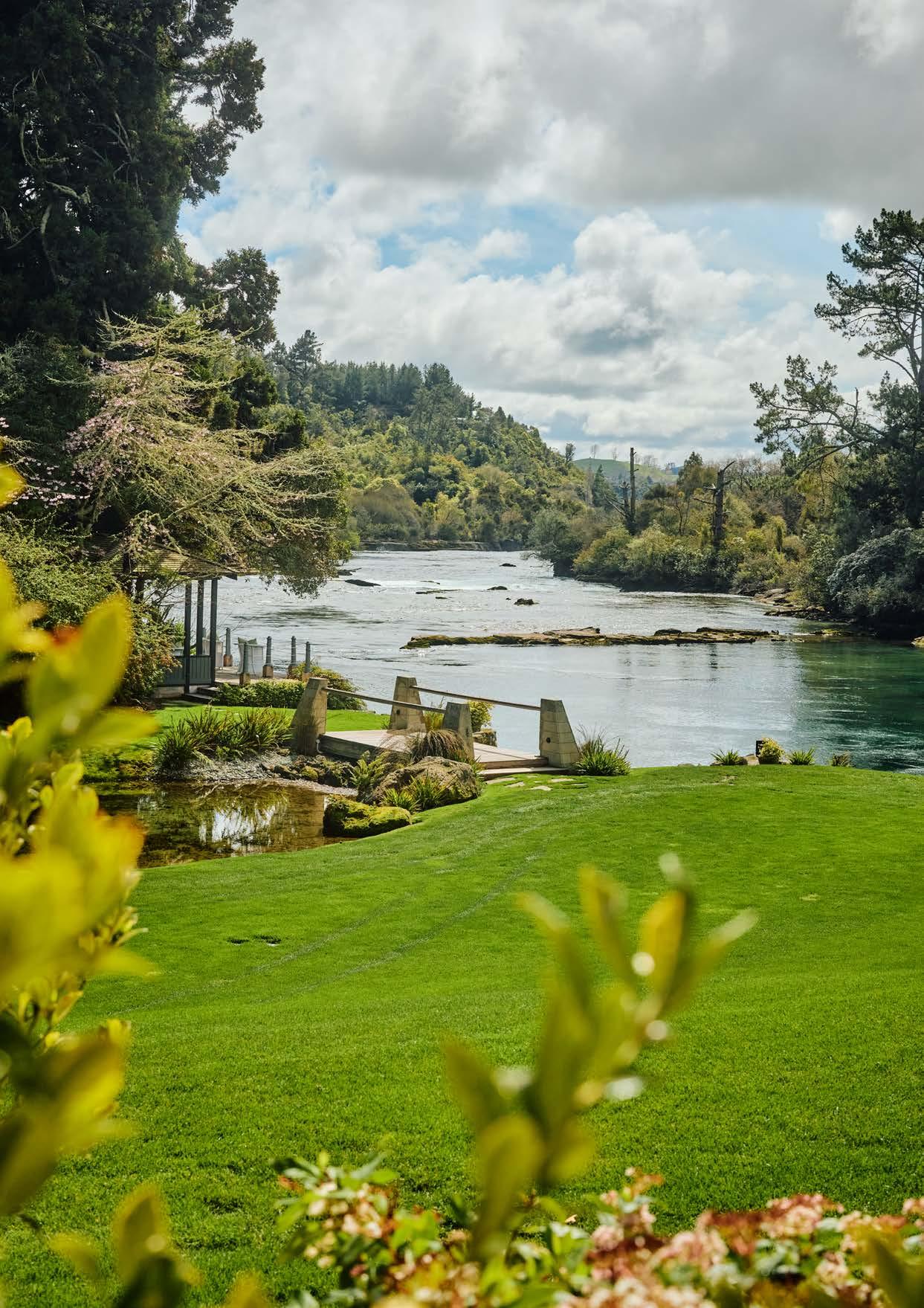 The magnificent park-like surrounds of Huka Lodge invite leisurely pursuits onsite, including tennis and classic lawn games, while the option to cast a fishing line into the river, read a book by the pool or explore on two wheels or are equally appealing.