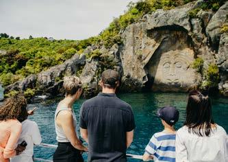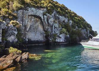 A gentle and stylish way to experience the scenic beauty of Lake Taupō, a half day luxury cruise takes in magnificent lake and mountain views and offers an up-close encounter with the giant Ngatoroirangi Mine Bay Māori rock carvings, with options to fish or hop in a watercraft for some closer exploration.