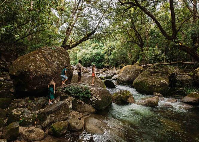 The Ngana Julaymba Dungay: We All Going Daintree tour offers guests the chance to discover the Kuku Yalanji people’s deep connection with Country at Mossman Gorge, learn about bush foods and medicines and try traditional Aboriginal hunting techniques including mud-crabbing in the mangroves at Cooya Beach.