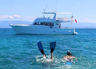 Maximum 10 people. Includes snorkel and fishing equipment, morning tea, gourmet lunch and afternoon tea. Scuba diving available at additional cost. A 20% surcharge applies for bookings over Easter and Christmas.