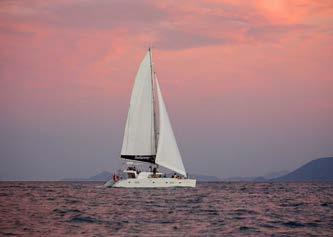 Sail into the sunset aboard a first-class catamaran as the sea glows gold and mountains fade to silhouette. Recline on the foredecks, feel the splash of the waves, admire the view from the bridge or toast the twilight from the open-air lounge.