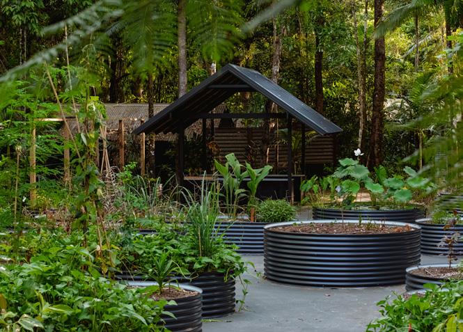• An extensive Kitchen Garden has been created onsite where the kitchen team cultivates local and especially Indigenous edible ingredients for use in the lodge’s daily changing menus. A walk through the garden at dusk is a wonderful way to learn about the diverse range of tropical produce and witness its short journey from garden to plate, drink in hand.